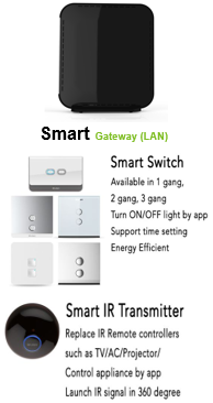 Terhubung ke jaringan listrik rumah dan dikendalikan melalui sinyal Wi-Fi/Zigbee/Z-Wave.